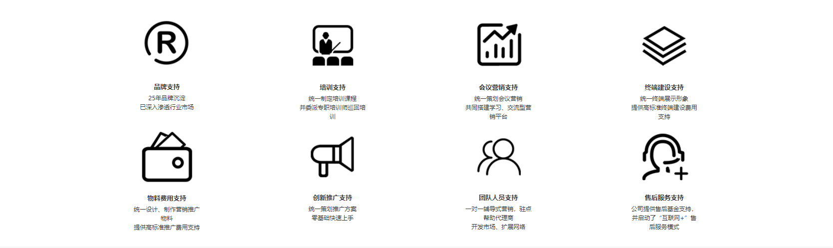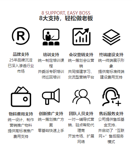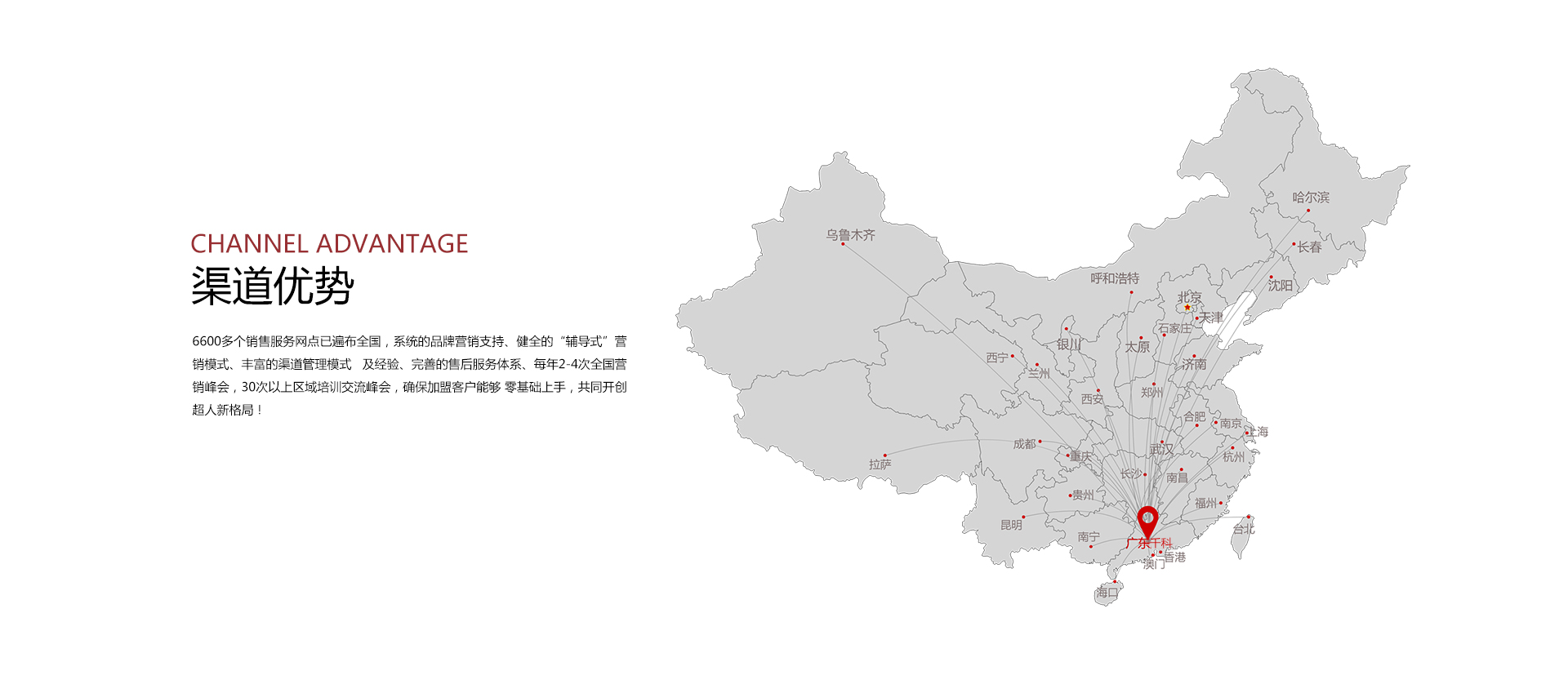 6600多個銷售服務網(wǎng)點已遍布全國,系統(tǒng)的品牌營銷支持、健全的“輔導式”營銷模式、豐富的渠道管理模式 及經(jīng)驗、完善的售后服務體系、每年2-4次全國營銷峰會,30次以上區(qū)域培訓交流峰會,確保加盟客戶能夠 零基礎上手,共同開創(chuàng)超人新格局!