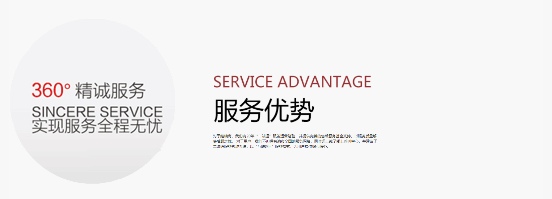 對于經(jīng)銷商,我們有20年“一站通”服務運營經(jīng)驗,并提供完善的售后服務基金支持,以服務質量解決后顧之憂。 對于用戶,我們不但擁有遍布全國的服務網(wǎng)絡,同時還上線了線上呼叫中心,并建議了二維碼服務管理系統(tǒng),以“互聯(lián)網(wǎng)+”服務模式,為用戶提供貼心服務。